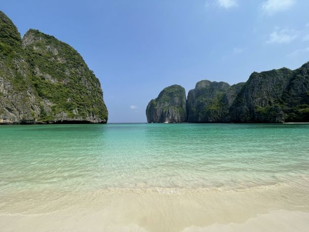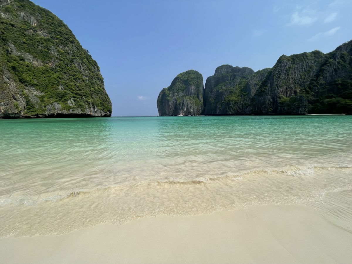 Maya Bay, gelegen auf der thailändischen Insel Phi Phi Leh, zieht Jahr für Jahr Tausende von Besuchern an. Die Schönheit des Ortes ist unbestreitbar und hat viele Reisende dazu inspiriert, ihre eigene Version des Film-Moments zu erleben. Das klare, türkisfarbene Wasser und der sanfte weiße Sandstrand sind ein Anblick, den man so schnell nicht vergisst.