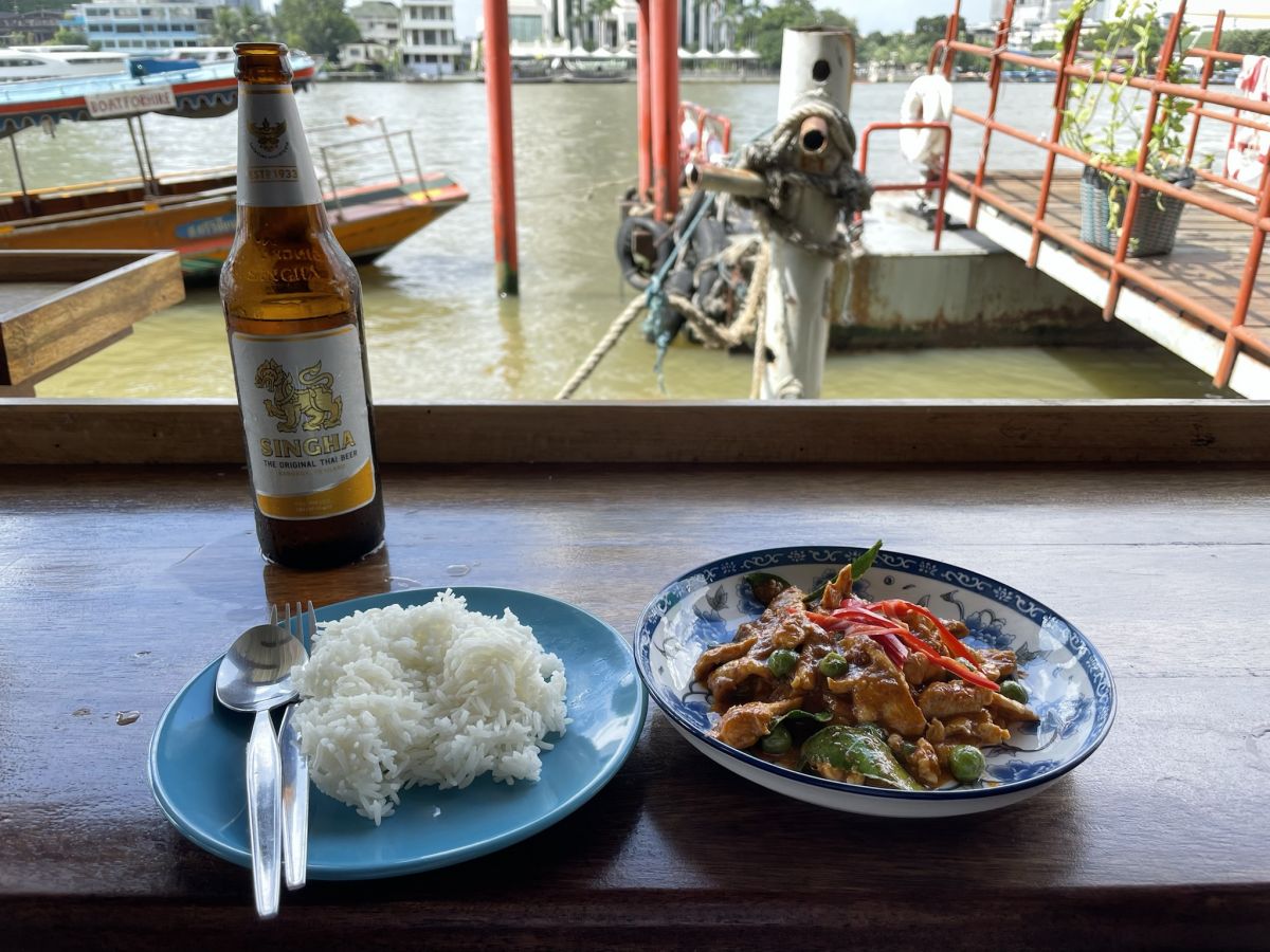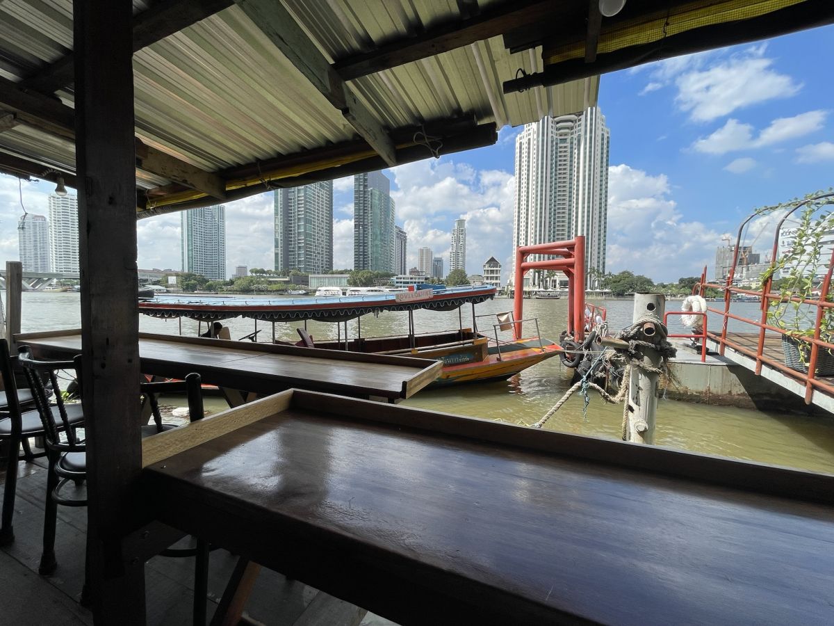 Der erste Eindruck von Jack’s Bar ist schon beeindruckend. Das rustikale und dennoch stilvolle Ambiente verleiht dem Ort eine einladende Atmosphäre. Die Tische und Stühle sind auf einer offenen Terrasse angeordnet, die einen atemberaubenden Blick auf den Fluss und die vorbeifahrenden Boote bietet. Es ist der perfekte Ort, um einen Drink zu genießen und den Sonnenuntergang über dem Chao Phraya zu beobachten.