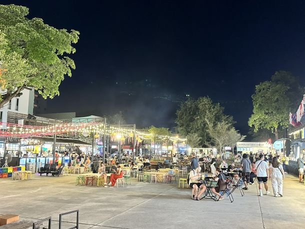 Was den Ploen Ruedee Night Market besonders auszeichnet, ist das gemütliche Ambiente. Die Stände sind auf offenen Flächen angeordnet, und es gibt zahlreiche Sitzgelegenheiten im Freien. Ihr könnt euch an langen Tischen niederlassen, euer Essen genießen und die Sterne am Himmel betrachten. Die Livemusik sorgt für eine entspannte Stimmung und macht den Abend zu einem echten Erlebnis.