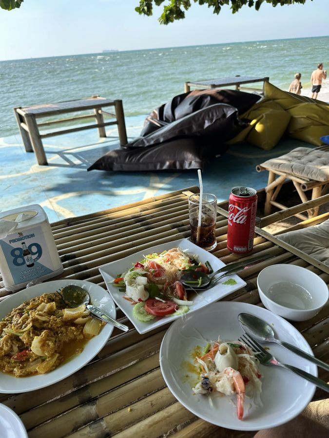 Was das Bamboo Beach Restaurant wirklich auszeichnet, ist die atemberaubende Aussicht auf den kleinen Strandabschnitt. Das türkisfarbene Wasser des Golfs von Thailand erstreckt sich bis zum Horizont, und der helle Sandstrand ist so sauber und einladend wie nur möglich. Es gibt sogar Sonnenliegen, auf denen man sich entspannen und die warme Sonne genießen kann.