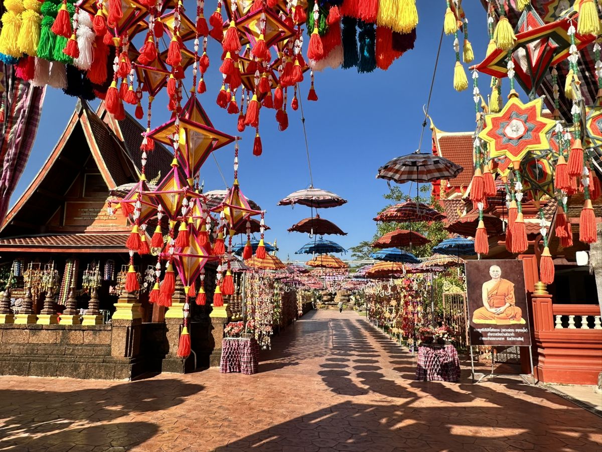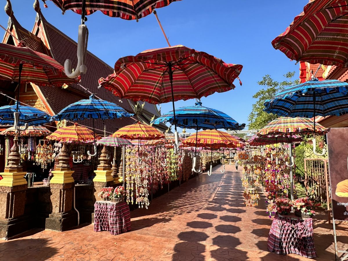 Ein Höhepunkt meines Besuchs war der einzigartige Gang durch den Tempelgelände, der von liebevoll geschmückten Regenschirmen gesäumt wird. Diese kunstvollen Regenschirme verleihen dem Weg zwischen den Gebäuden eine bezaubernde Atmosphäre und erzeugen ein Spiel aus Licht und Schatten. Es fühlte sich an, als würde man durch einen magischen Tunnel schreiten.