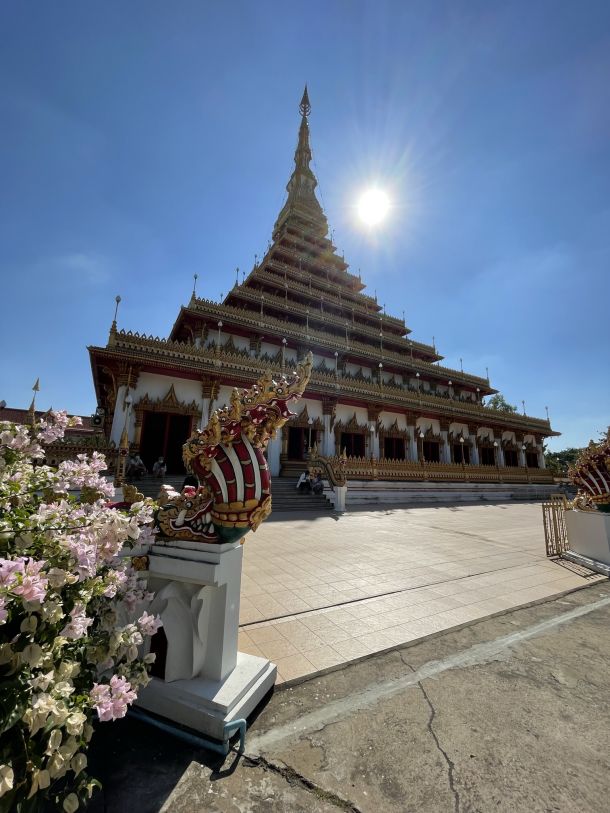 Der Phra Mahathat Kaen Nakhon, auch bekannt als Wat Nong Wang, liegt im Zentrum der Stadt Khon Kaen und ist eines der bekanntesten Wahrzeichen der Provinz. Der Tempel wurde im Jahr 1784 erbaut und hat seitdem eine wichtige Rolle im spirituellen und kulturellen Leben der Region gespielt. Er ist auch ein bedeutender Ort für buddhistische Mönche und Gläubige, die hierher kommen, um zu meditieren und ihre Gebete zu sprechen.