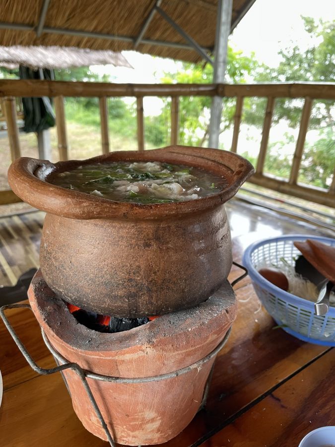 Während man das köstliche Essen genießt, kann man den Fluss beobachten und den vorbeiziehenden Booten und Schiffen zusehen. Die malerische Aussicht auf den Mekong River schafft eine unvergessliche Atmosphäre, die das kulinarische Erlebnis noch intensiver macht.