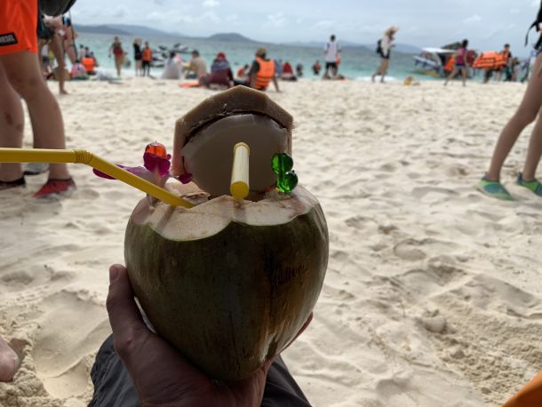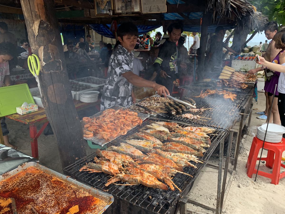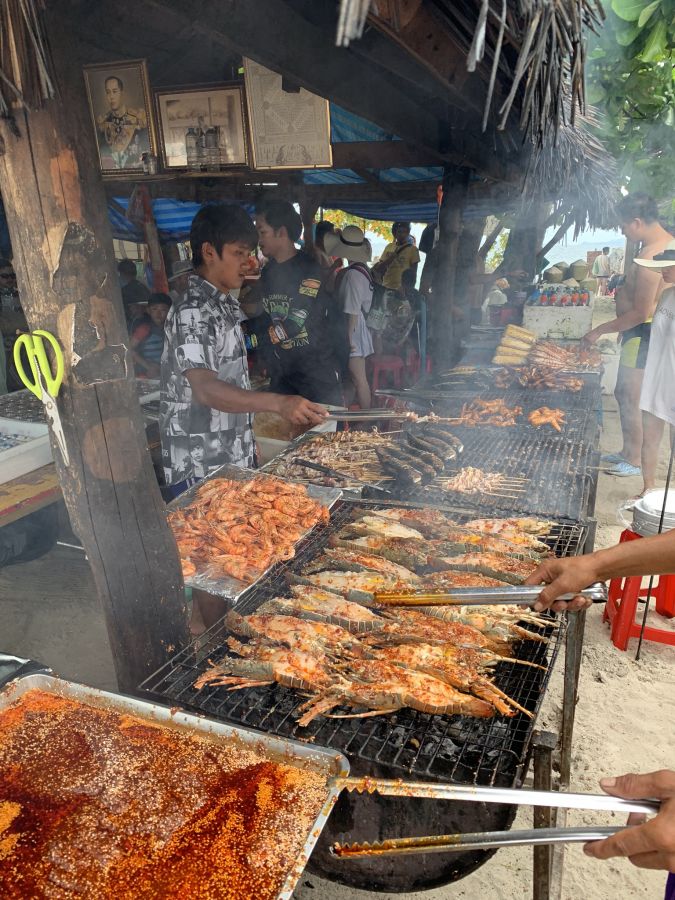Nachdem ich genug Zeit unter Wasser verbracht hatte, kehrte ich an den Strand zurück, um mich auszuruhen und etwas zu essen. Auf der Insel gab es einige Essensstände, die lokale Delikatessen und frischen Fisch anboten. Der Duft von gegrilltem Fisch und exotischen Gewürzen lag in der Luft und ließ mir das Wasser im Mund zusammenlaufen. Ich entschied mich für einen Teller mit frisch gegrilltem Fisch, begleitet von einer erfrischenden Kokosnuss. Das Essen war köstlich und ich genoss es, meine Mahlzeit mit Blick auf das glitzernde Meer zu genießen.