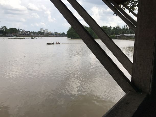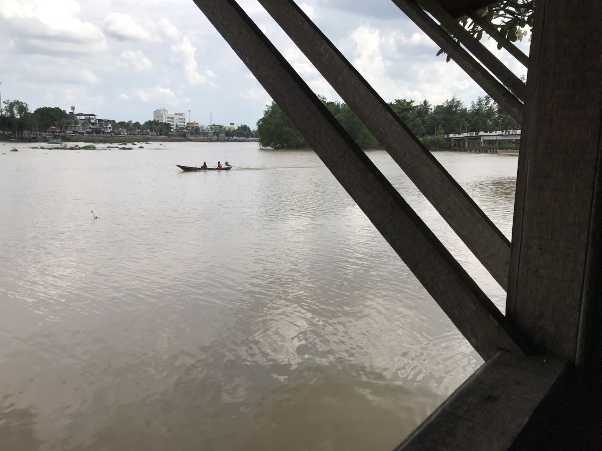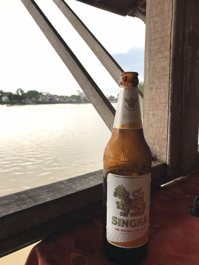 Das Crossroad Restaurant in Surat Thani. An diesem Abend erlebte ich einen mega Wolkenbruch, aber trotzdem genoss ich das großartige Essen und die kühlen Getränke in diesem Restaurant, das direkt am Fluss liegt.
